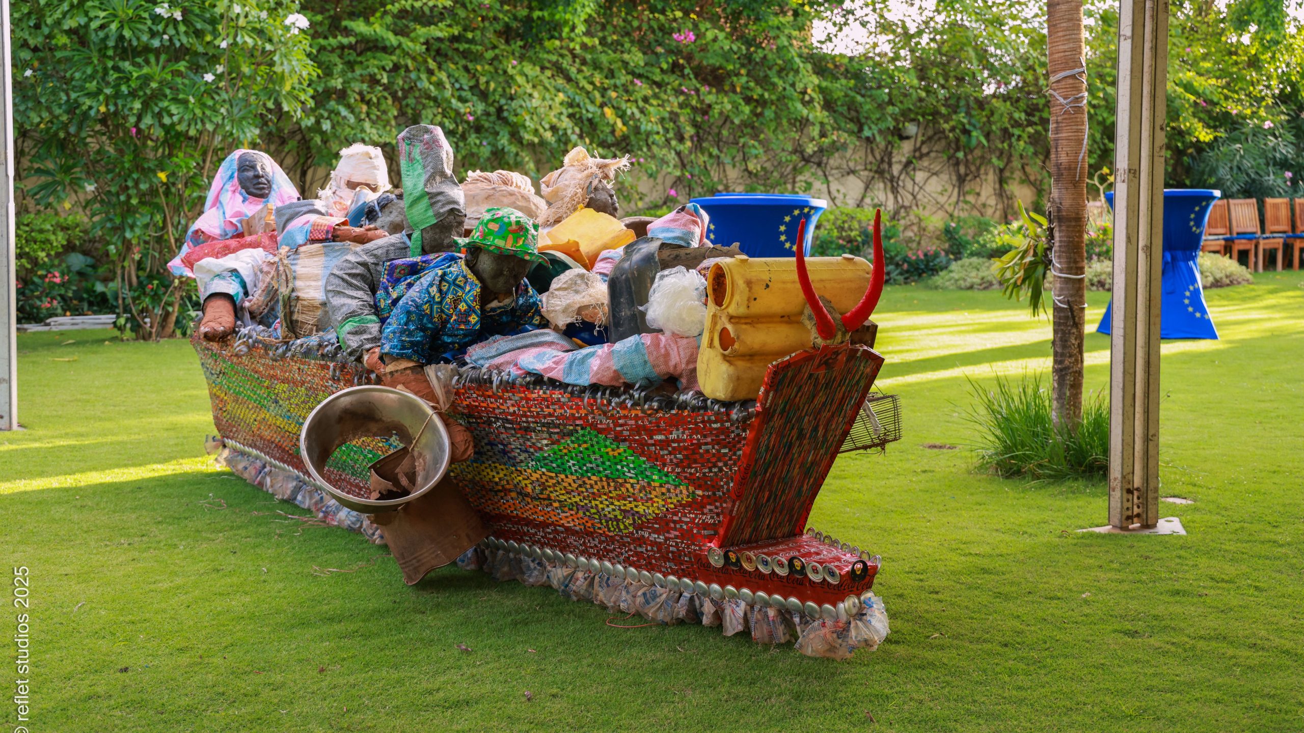 La Résidence de l’Union européenne à Cotonou a ouvert ses portes pour accueillir les créations des artistes Verckys et Génia Ohini. Depuis le Jeudi 16 Octobre 2025, les créations de ces artistes sont exposées dans les jardins de la résidence de l’UE.