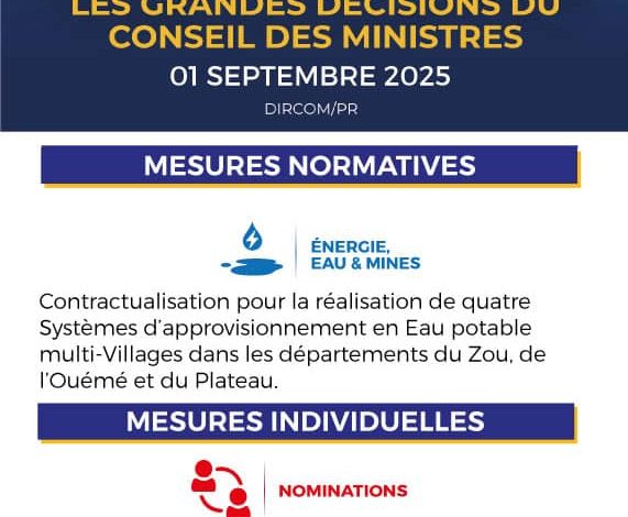 Lire la suite »Par : La Rédaction© BOULEVARD DES INFOS En République du Bénin,le Conseil des Ministres tenu le Mercredi 1er Octobre 2025…