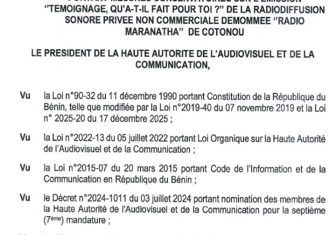 Lire la suite »Par : Chafik FAGBEMI© BOULEVARD DES INFOS Au Bénin, la Haute Autorité de l’Audiovisuel et de la Communication (HAAC) a…